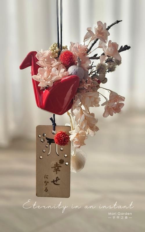 ✨️花鶴材質:陶瓷鶴、不凋花/果實、乾燥花、乾燥櫻花枝