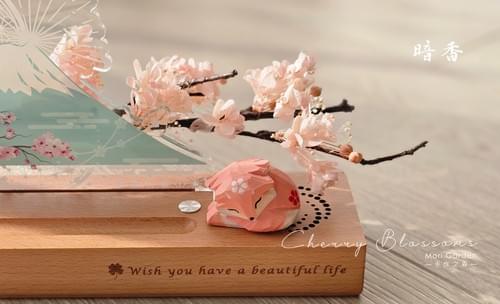 搭配兩款不凋花造型「漫山」與「暗香」,皆以乾燥櫻花枝製作,櫻花樹下還有可愛浪漫的粉色櫻花狐🌸🦊